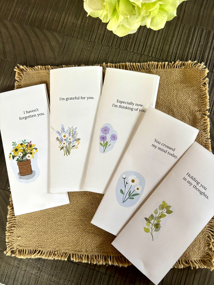 Sometimes the quiet moments on a porch are when we find ourselves thinking about people we care about. The Remembered Collection includes five printable cards for those moments for when someone comes to mind and you simply want them to know they are remembered. Simply print at home, fold, and keep a few on hand. You can find these tri-fold cards in my MarySparkleSilver Etsy shop. The best part? You can print as many as you like, so you can spread the love as much as you want. I really appreciate you stopping by.