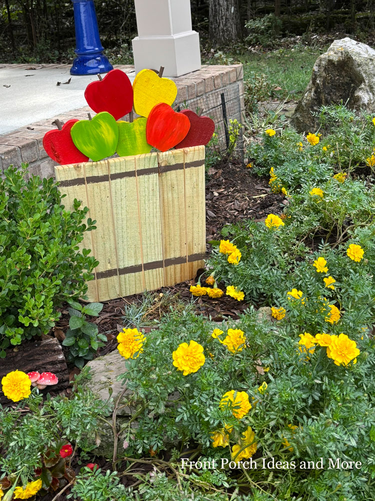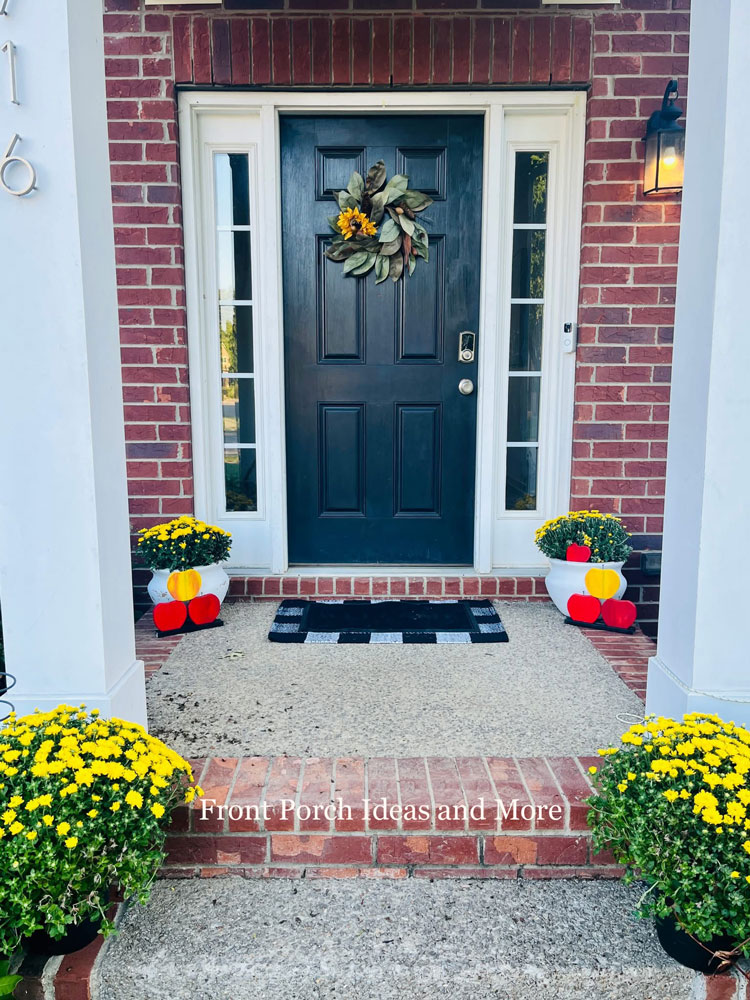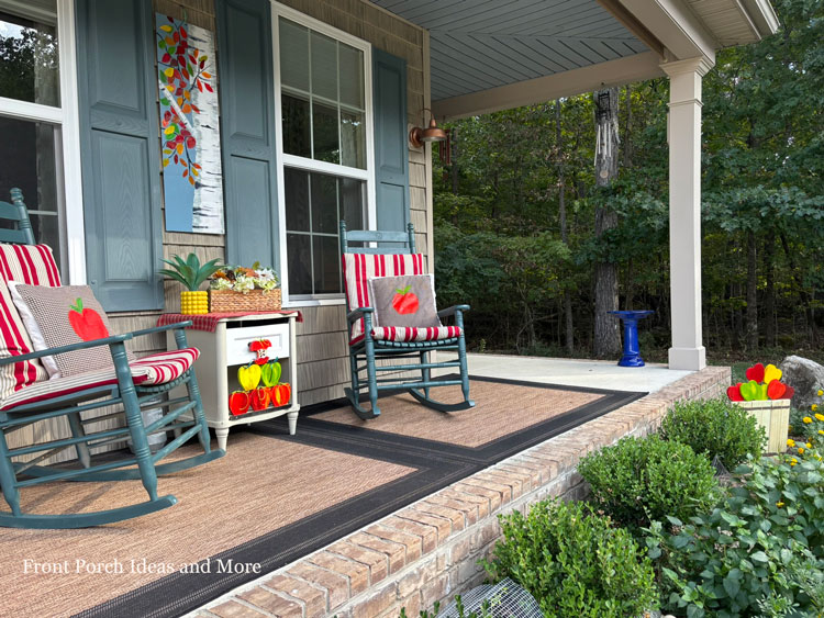 Their yellow mums are stunning with the apples! No matter the size of your porch, a few thoughtful touches of color and comfort can make it feel extra inviting