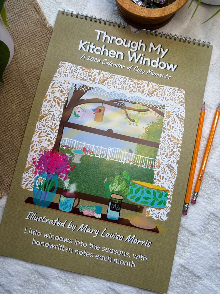 My “Through My Kitchen Window” calendar, is inspired by the simple moments we love — quiet mornings, steaming mugs, and the view that changes with every season. It’s been such a joy to paint, and I hope it brings that same gentle, everyday comfort for anyone who hangs it up in their home.