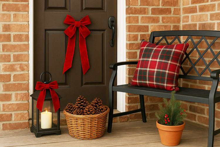 Tie a Velvet Bow Anywhere: Wrap a simple velvet ribbon around a lantern handle, door handle, or railing post. Instant color with almost no effort.