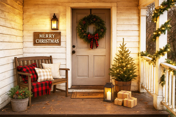 There’s something special about porches in December. Maybe it’s the warm glow of lights against the early evenings, or the way a simple wreath can make a whole home feel welcoming.