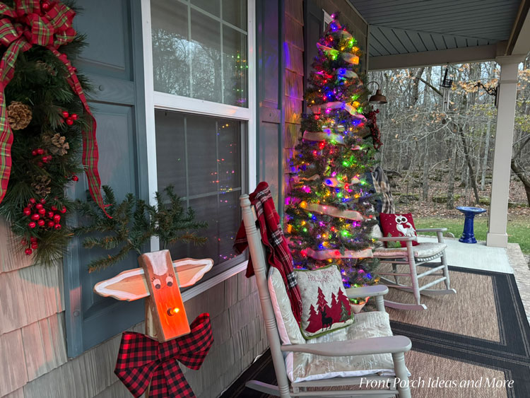 Add a Plaid Pillow: A single plaid pillow transforms an outdoor chair or bench into a cozy holiday spot.